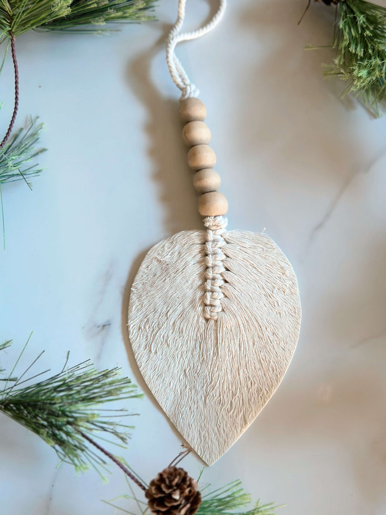 Just in time for the holidays, we have these beautiful handmade macramé leaf ornaments. They can also be used on doorknobs, hung on hooks, and look stunning when strung together.